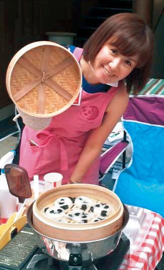 ぶらくり丁で9月に開かれたポポロハスマーケットで、パンダ模様のデコもちを蒸し、きなこを添えて販売したところ、「かわいい」「見た目だけでなく味も良い」と好評だった。「みかんや梅で色を付け、『和歌山』の文字を表現した大きなデコもちに挑戦したい。まだまだ地元では知られていないので、普及させていければ」とほほ笑む。
