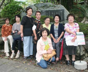 根来寺(岩出市根来)境内にある根来の子守唄歌碑前に、スマートフォンをかざすと、この歌を動画で聴ける案内板が設置された。今年活動50年目を迎える根来の子守唄保存会(写真)の取り組み。メンバーは「岩出の女性が受け継いできた伝統。後世に引き継ぎたい」と望んでいる。