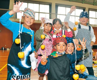 助口直太朗くんは「干す前に柿をお湯につけたらカビがわきにくくなると聞いて勉強になった」、魚田航大郎くんは「サッカー場の話を聞き、和歌山がそんなにすごい産地だったと知った。初めて柿をおいしく感じた」と喜んでいた。