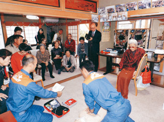 高齢者や障害者のデイサービスを行う和歌山市布施屋の「はっぴー&はーとⅢ」は11月21日、利用者や地域住民向けの救命救急講習会を開いた。道路幅が狭く、救急車の進入が難しい地域で、救急隊員到着までに助かる命を増やそうと初めて企画した。