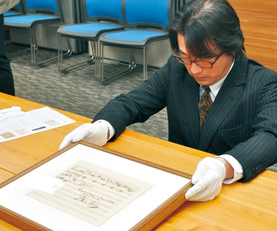 写真=寄託したベートーヴェン直筆の楽譜