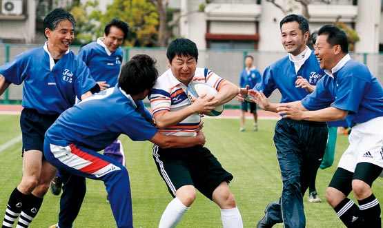 試合は、安全第一で楽しめるようタックルなし。スクラムやラインアウトも形だけで、競り合いなしで行う特別ルールだ。和歌山市やその周辺の高校でラグビー部に所属していた人対象。年齢は問わない。