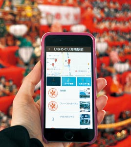 海南市はイベントや観光情報をまとめたアプリ「ようこそ海南」を15日から配信している。海南市産業振興課の山家友希係長は「紀州海南ひなめぐりと同時に配信を始めました。地域に密着した内容になっています。JR海南駅を起点に町歩きを楽しんで」と呼びかける。