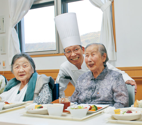 全日本司厨士協会紀州支部に所属するフランス料理レストランの5人が25日、和歌山市紀三井寺の特別養護老人ホーム、プチパレス紀三井寺で入居者約30人に料理をふるまった。同支部の松場佑香さんは「固形では食べられない、油っぽいものは嫌いなど、施設の人に利用者のニーズを聞き、メニューを決めました。喜んでもらえてよかった」と話した。