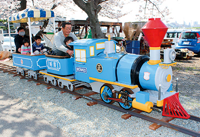満開の桜の下、静かに動き出したのは、かつて丸正百貨店屋上にあったミニ電車「辨慶号」。3月27日、車両完成お披露目会が和歌山市で開かれ、近所の人や協力者ら30人が電車を囲んだ。2019年秋から修理してきた田中義規さんは「作業を見守り続けてくれた人らが喜び、小さな子らが何度も乗ってくれて感慨深い。今回進んだのは20㍍だったので、もっと長く走らせたい。また新たな夢が始まりました」と笑顔を見せる。
