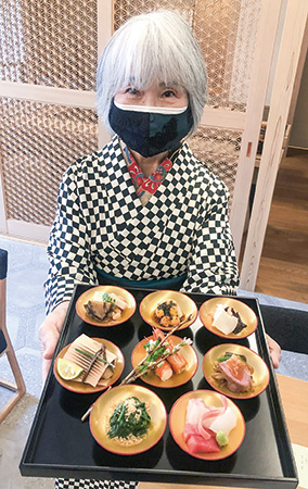 海南市の長保寺に残っていた400年前のレシピを使用し、初代藩主、徳川頼宣が伊勢へ鷹狩りに出かけた際、口にした料理を再現。和歌山市の料亭、ちひろと岡公園の茶室で提供する。和歌山の食材で作った鰤(ぶり)の杉板焼きや貝焼き、蛸飯といった品を上品に彩った料理で、普及に力を入れてきたKIYORA和歌山代表の植野千惠子さんは「海南海草調理会のメンバーが200回以上集まりレシピを作った熱意に感銘を受け、提供する所を探していました」。協会の体験会でも「和歌山へ来たお客さんに食べてもらえる」などと好評で、植野さんは「殿様だけが口にできた400年前の最先端の食文化を味わえます。いずれ外国の方に食べてもらい、世界へ広がる日が来てほしい」と望む。
