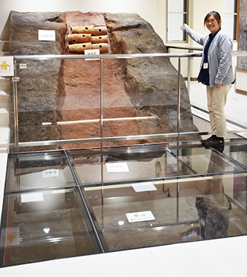 写真=高低差3㍍ある埴輪窯の一部は床下を掘って展示