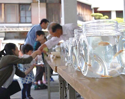 新型コロナウイルスの感染拡大で昨年に続いて中止になった海南市の「黒江めった祭り」。イベントに向け、大事に育ててきためだかの面倒を見てくれる人を募ろうと、実行委は「めだか救い」と題した販売会を5月30日㊐~6月9日㊌、同市黒江の池庄漆器店で開く。