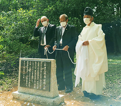 和歌山出身の偉人・賢人について研究する「陸奥宗光外務大臣」の功績を教育に活かす実行委は5月16日、和歌山市和田の竈山神社で15年前、海南市出身の元陸軍少尉、小野田寛郎さんが植樹を行った記念の石碑を建てた。