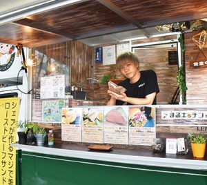 日本料理、イタリアン、フレンチなどで10年以上経験を積み、ソムリエの資格を持つ山路さん。昨年10月、シェフの味を気軽に楽しんでもらいたいと、ローストビーフサンドやデザートサンドの販売をキッチンカーで始めた。平日はスーパー、土日は四季の郷公園や海南ノビノスなどで出店し、車の前に行列が絶えない人気店になっている。