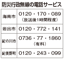 防災行政無線の内容を通話料無料で確認できるサービスを、和歌山市が9月1日に始めた。番号は(0120・077・199)。