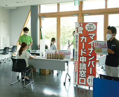 5月末までの約5年半で交付数1万5674人に対し、6〜8月の3ヵ月で申請者は5747人に上った。同課は「接種会場で行うのは全国でも珍しく、多くの人が足を止めてくれる。出張窓口限定で配る地元企業の商品も人気。今後は取得した人が利便性や恩恵を感じるような特色を出せれば」と意気込んでいる。