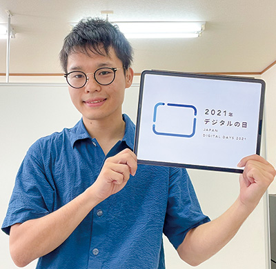 デジタル庁が9月に設置され、今年10月10日と11日に初めての「デジタルの日」を迎える。このロゴを製作したのは、紀の川市出身で、耳の聞こえないデザイナー、岩田直樹さん(25、写真)だ。「壁のない、だれに対しても優しいデジタルをイメージし、あえてすき間を設けた不完全な形にしている。この機会に決めつけや偏見をなくし、だれでも過ごしやすい社会になれば」と望んでいる。