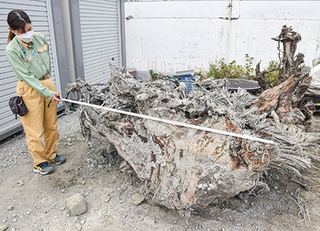 課題は見つかった根の扱いだ。一部は高須館長が講師を務める和大の生物学教室で預かるが、他については藤本さんが文化財としての保管を博物館や行政へ働きかけ、現在、県などで検討が進められている。藤本さんは「文化財ではなくとも、松並木の痕跡は歴史資料です。地域の個性的な景観の記憶を留めるため、なんとか博物館資料やモニュメントとして活用できないか。まずは地元の人に松並木を知ってもらいたい」と訴えている。