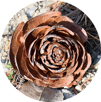 バラのような形をした松ぼっくり、シダローズ。和歌山城内の護国神社では11月下旬から2月にかけ、シダローズを探す人がやってくる。社務所職員は「親子連れが拾って、首飾りやリースの材料にするようです。毎年9月の詩吟大会で全国から集まる人に配ると、喜んでくれます」とほほ笑む。