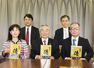 「和歌山のファンを増やそう」をコンセプトに本を出版する紀州文化の会が、和歌山にゆかりのある60歳以上の男性100人を紹介する『あがらの和歌山~紀州の侍』を1月29日㊏に発売する。大江寛会長(写真中央)は「若い人には和歌山が輝いていたころに活躍した人たちを、年配の方には同じ世代でもまだまだがんばっている人がいると知ってもらいたい」と話す。