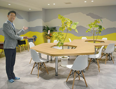 市の補助を受け、アズマハウス(同市黒田)は南海和歌山市駅近くの第2冨士ホテル2階を改修し、「サテライトオフィスキノワ」を開設した。約50畳と40畳の2部屋と、宿泊客も利用できる共用のコワーキングスペース、オンライン会議用の個室などを設けた。