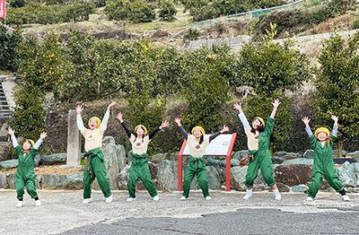 続けて、この曲を使ったダンスを企画。同市が鈴木姓発祥の地でもあるのにちなみ、タレントでダンサーのパパイヤ鈴木さんに振り付けを依頼した。撮影は、橘本神社や藤白神社、大崎港など、同市の10ヵ所で実施。ダンスはオーディションで選ばれた小中学生6人が披露する。その一人、西浜中1年の山田哲也さんは「人を笑顔にしたいとの夢があり、応募しました。見た人が自然と笑顔になれる曲とダンスです」とにっこり。