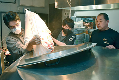 地元産原料のみのビールを造ろうと、かつらぎ町の麦芽、高野山のホップに加え、紀三井寺の桜で酵母の採取に取り組んでいた𠮷田代表。那智勝浦町のクマノザクラと御坊市の道成寺にある入相桜から酵母を取り出すのに成功していた和高専に依頼し、3月、5年の岸田悠佑さん、木脇蓮也さんと開発を始めた。