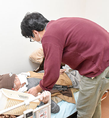 ヘルパー資格を取得し、農作業のかたわら、1月から高齢者施設でも働く。「和歌山弁の理解に苦労するけど、お年寄りの食事や更衣介助など、お世話を通して役に立てていると実感できる。少しずつ人とかかわりながら自分を取り戻せたら」──。