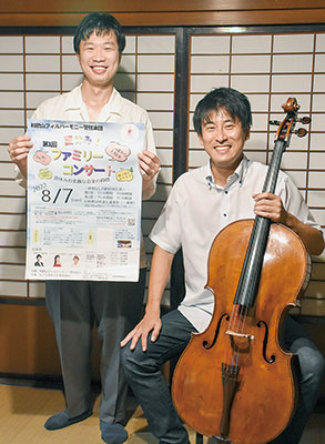 和歌山の音楽文化を盛り上げたいと発足したオーケストラ「和歌山フィルハーモニー管弦楽団」が8月7日㊐、岩出市根来の旧県議会議事堂で初コンサートを開く。福田浩丈代表(37、写真右)と事務局長の小西基さん(37、同左)は「地域の人たちが『私の町のオーケストラ』と誇りを持てる楽団に育てたい」と力を込める。