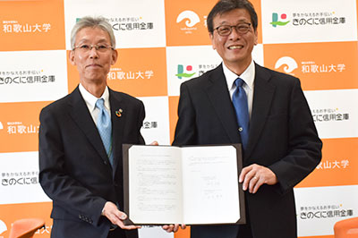 若者の地元定着率の低さや中心市街地の衰退はじめ、和歌山が抱える課題解決を目指し、きのくに信用金庫と和歌山大学が21日、包括連携協定を結んだ。