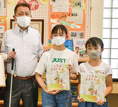 進行性の難病で失明した山﨑浩敬さんのバス通勤を手伝う和歌山大学附属小学校児童の実話を描いた絵本『バスが来ましたよ』が6月に出版されました。始めた子が卒業した後は後輩、さらに後輩へと10年以上、優しさのバトンが受け継がれています。現在、サポートしている6年の河島香音さんと4年の西前友雅(ゆい)さんは「お手伝いするのは当たり前のことだと知ってもらいたい」と声を弾ませています。