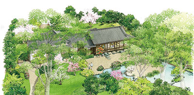 完成まであと3ヵ月。「まずは復元した建物を見学し、樹齢200年と言われる木々や池のある庭を眺め、四季折々の景色で心を癒してもらいたい。ここで心を満たした後、海南市内、さらに熊野、高野へと足を運ぶ──。県内をめぐる観光の拠点を目指します」