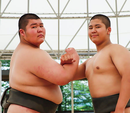 金沢大会で団体優勝した箕島は、校内の相撲場が本拠。部員16人が、2面ある土俵でぶつかり合う。野田典雅主将(3年)は「強くなりたいと、全員の意識が高く、基本をしっかり練習しています」ときっぱり。6月の近畿大会個人戦で西出選手を下して優勝し、「土俵際まで持って行かれましたが、残す事ができ、自分の形で寄り切れました」と自信を深めている。