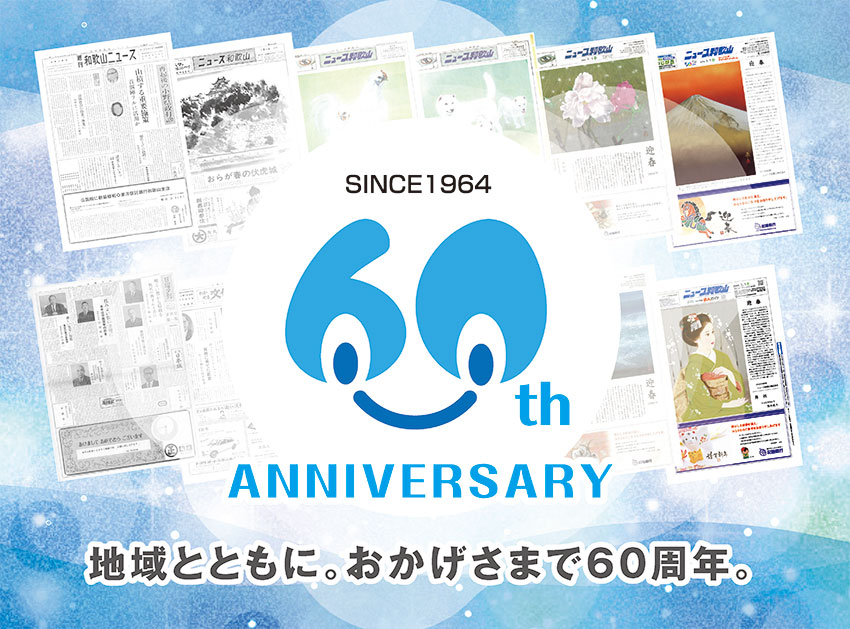 ニュース和歌山は今年、創刊六十周年を迎えます。東京オリンピックが開催された一九六四年十二月、創業者小川伊三郎が「郷土紙の理想像」を目指して発刊して以来、地域発展の一助となるべく不断の努力を重ねてまいりました。
