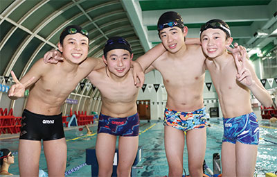 3月27日から東京で開かれる水泳ジュニアオリンピックのフリーリレー(50㍍×4)に、和歌山市のパルポート太田で練習する6年生4人が出場する。西和佐小の古谷奏多くん、智辯和歌山小の星野仁志くん、吹上小の中村蒼空くん、三田小の西川侑臣くんで、「1人0・5秒ずつ縮めて決勝へ行こう」と力を入れている。