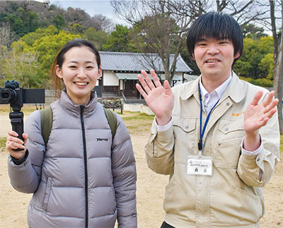 写真=動画を撮影した冨田さん(左)と、出演した移住定住戦略課の森島大介さん