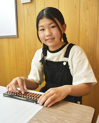 3歳上の兄の影響を受け、1年から同市吉礼の大河内珠算会に通い始めた。「算数は苦手だったけど、そろばんを始めてどんどん計算間違いが減り、楽しくなってきました」とにっこり。