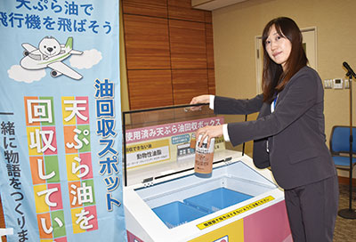 根本にあるのは、廃棄を最小限にするため、モノの長寿命化や再利用、再製造などを指すサーキュラーエコノミーの考え。回収した廃油の7割をバイオディーゼル燃料に精製し、残りも全てリサイクルする。県は、製油機能を停止した海南市下津町のエネオス跡にSAF(持続可能な航空燃料)製造拠点を誘致する計画で、「いずれは航空機燃料として役立てたい」と期待を寄せている。