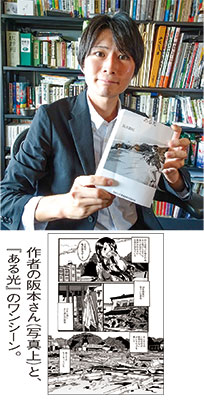 元県職員で、和歌山下津漫画制作同好会を主宰する阪本繁紀さんが、東日本大震災を題材にしたマンガ『ある光』を8月11日に刊行した。「災害は一瞬ですが、復興は何十年もかかる。日常を取り戻すのはどれだけ大変か、またそんな中でも夢や希望を持つ被災者の姿を知ってもらいたい」と力を込める。