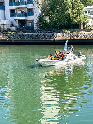 和歌山市中心部を流れる内川の美化に取り組む和歌山ロータリークラブが10月12日、小型船で市堀川を視察するスタディクルーズを実施。伏虎義務教育学校6年生と和大附属小学校4年生、引率の教員合わせて38人を招待した。