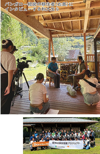 和大観光学部4回生の北又悠愛さんと2回生の東本凪央さんは、カフェや宿泊施設、養鶏場を営む経営者らを取材し、移住を決めた理由や暮らし、仕事、人との交流について聞いた。北又さんは、「移住された人が話した『地域の人に助けてもらっている』との言葉から、人のつながりが村の魅力の根底にあると感じました」。それに加えて東本さんは、「移住者は、地域に新しい風を送ることでその地に還元できる」とふり返った。
