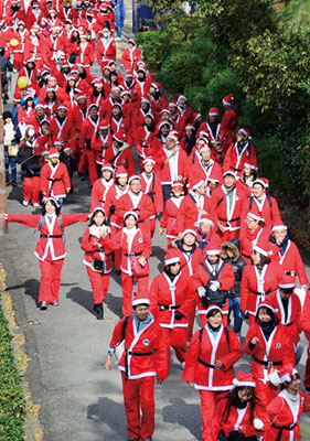 写真=初開催の2018年、サンタの衣装で大行進
