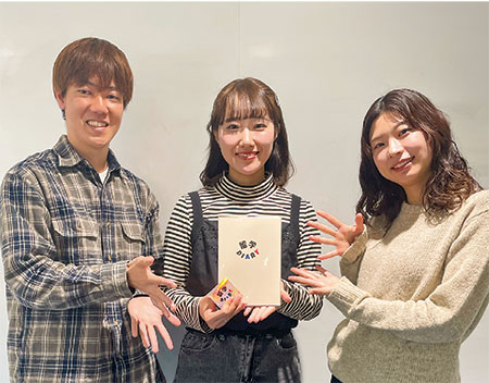 Sカレの「デジタル化時代に必要な手帳」部門に昨年12月、経済学部の池中さん、木村満厘さん(同中)、天野優音さん(同右)の3人が「外国語の表現と意味や現地のマナーなど、留学時に情報を書き込める手帳」を提案。これが部門優勝し、3月に商品化された。