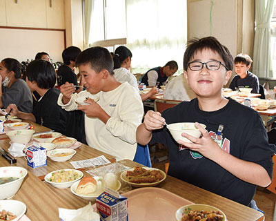 川野一郎校長は「物価高騰で大変な中、栄養士や調理員が熱意を持ってチャレンジしてくれ、感動しました」。川上さんは「きょうの経験が、子どもたち自身の健康づくりや管理能力の向上につながれば」と願っている。