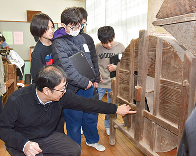 山﨑琉生さんは「今も動くものもある。実際に見てさわって、昔の道具に興味を持ってもらえたら」。立入あかりさんは「『こんな貴重なものがあったんだ』という驚きや発見がある資料館にしたい」と目を輝かせる。