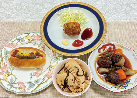 鯨肉の献立は竜田揚げに偏りがちで、太地町の加工現場で生じる端材(ミンチ肉)の利用も滞っている。こうした現状を課題視した県学校給食会が、行政・産業・教育・金融が参画するわかやま地域連携推進プラットフォームに活用策を依頼。構成会員の同短大が応じ、考案した。